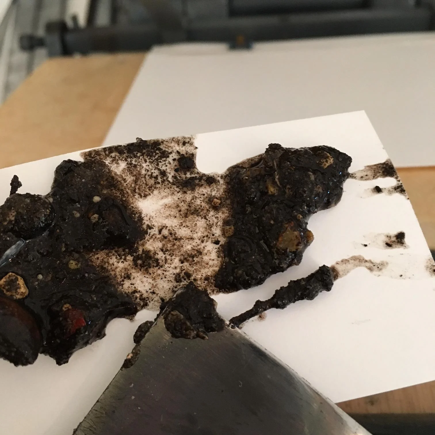 Letterpress experiment using Fenland Mud and Canadian seawater - Carly Butler.